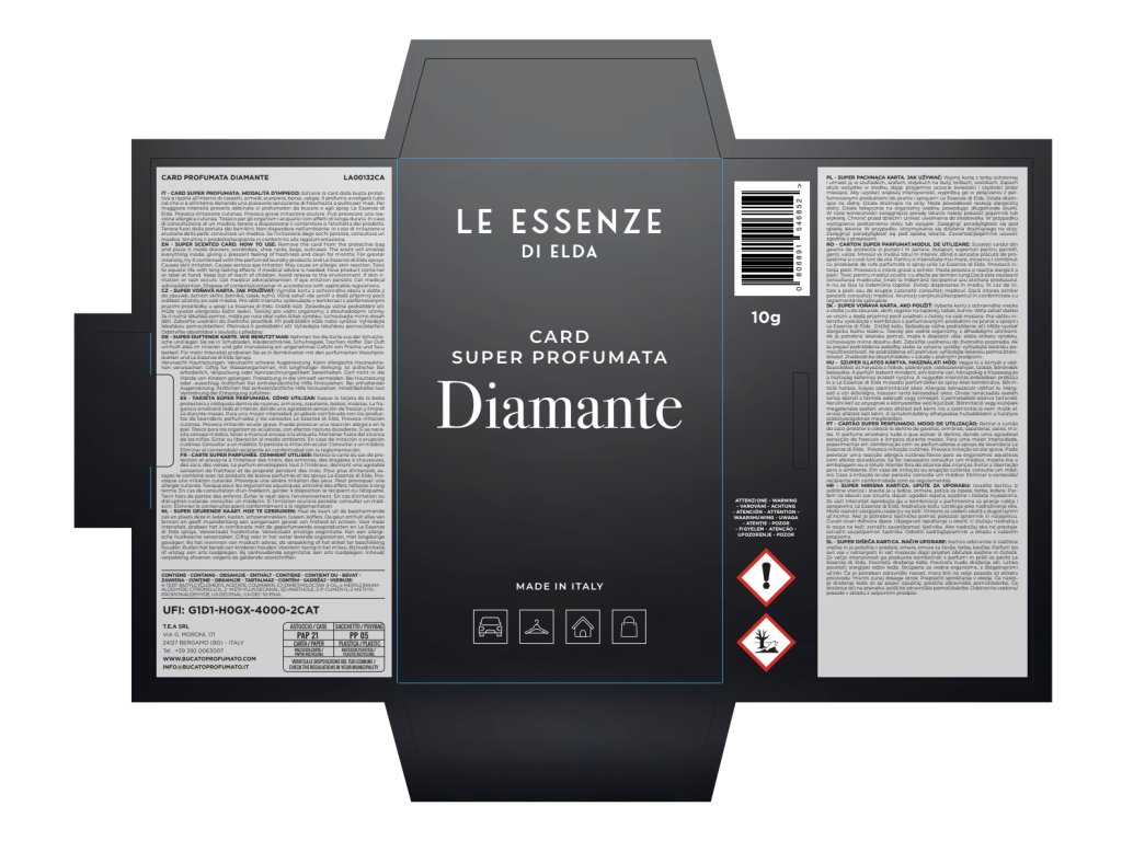 Card parfumat DIAMANTE - Aromă de săpun, pudrată.