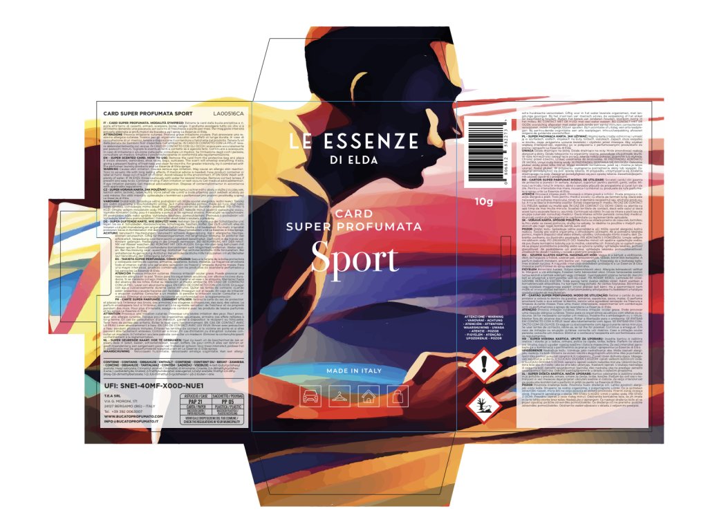 Card parfumat SPORT - Un parfum proaspăt de pudră, plin de flori, cu nuanțe de citrice și eucalipt.