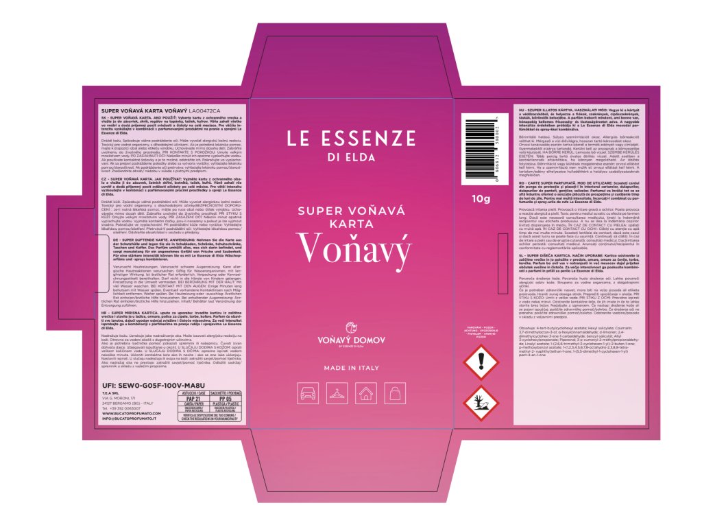 Cărțile parfumate din ediția Le Essenze di ELDA sunt fabricate dintr goma specială, din care parfumul se eliberează treptat. Ele vor oferi îmbrăcămintei tale o aromă delicată și plăcută.