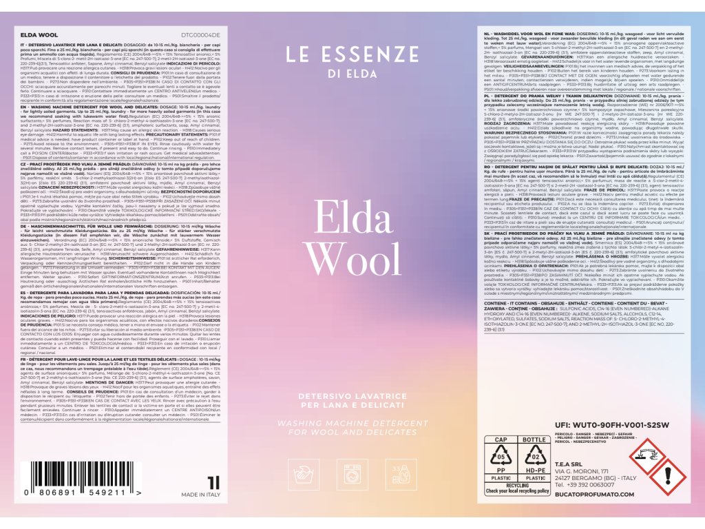 Detergent lichid pentru mașina de spălat rufe din lână și țesături delicate ELDA WOOL 1000 ml cu un parfum floral dulce și delicat.