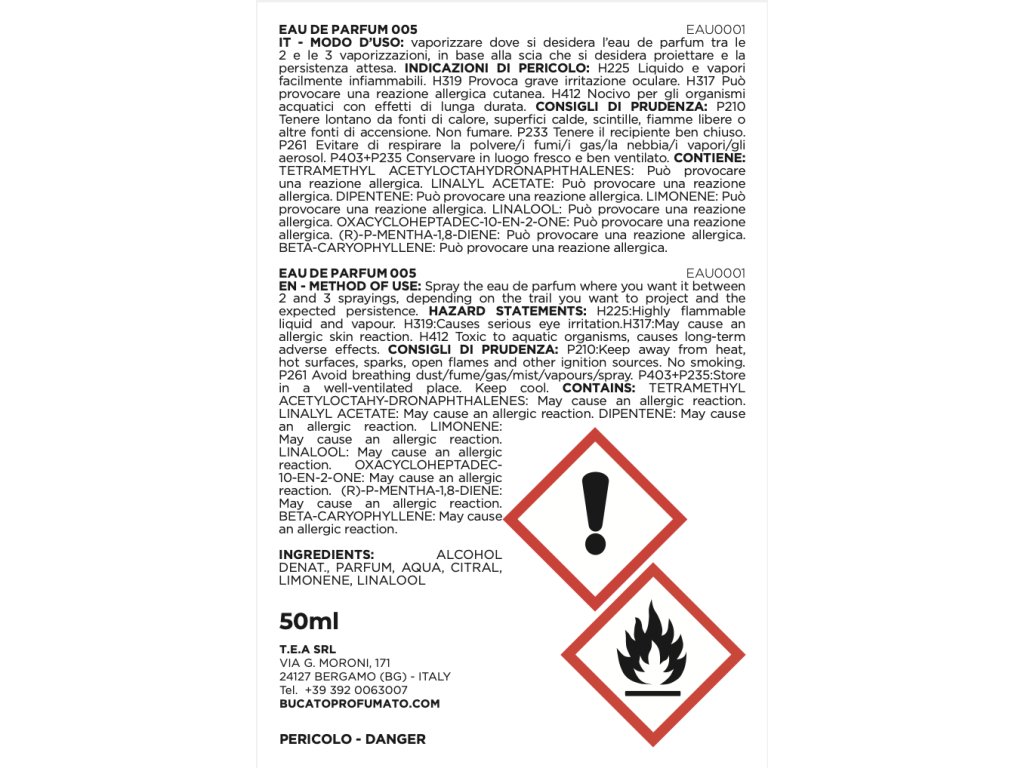 Eau de Parfum 005 50 ml cu parfum puternic de ambră lemnoasă.