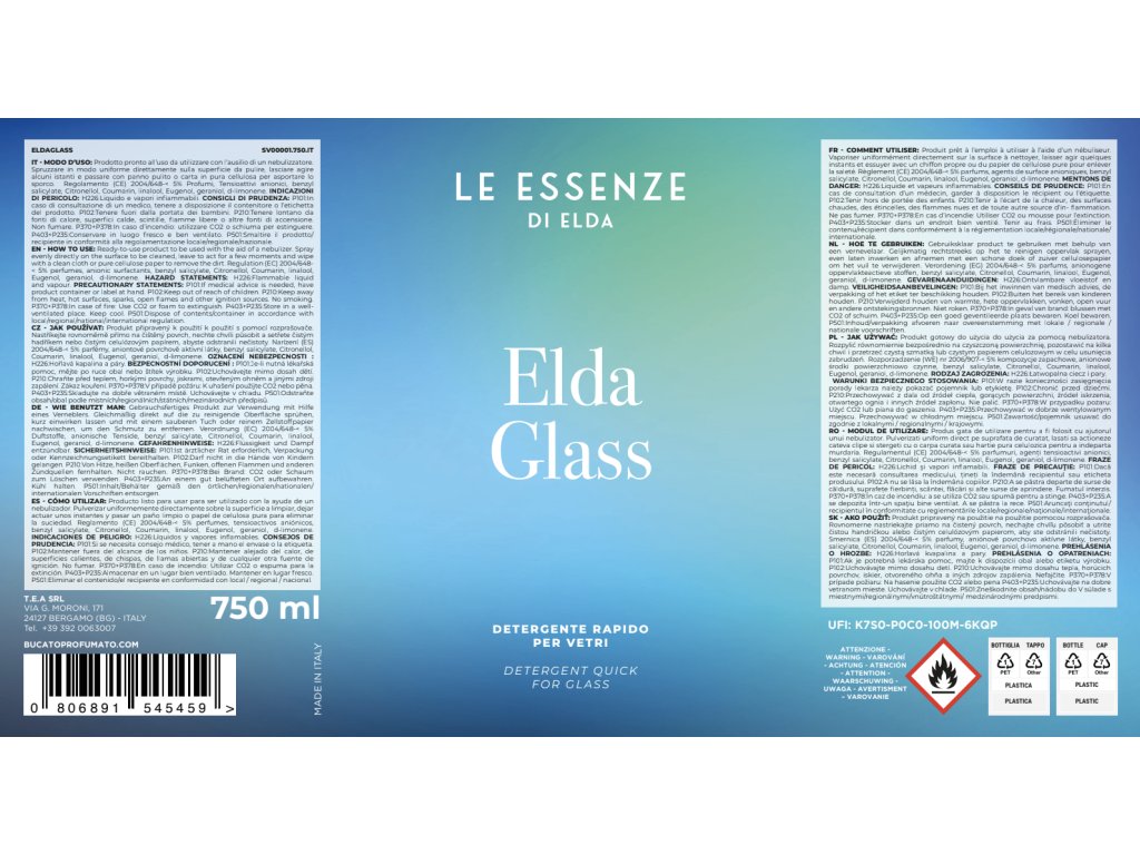 Spray pentru geamuri ELDA GLASS 750 ml este un detergent rapid pentru geamuri, cu care locuința dumneavoastră va străluci de curățenie și luciu.