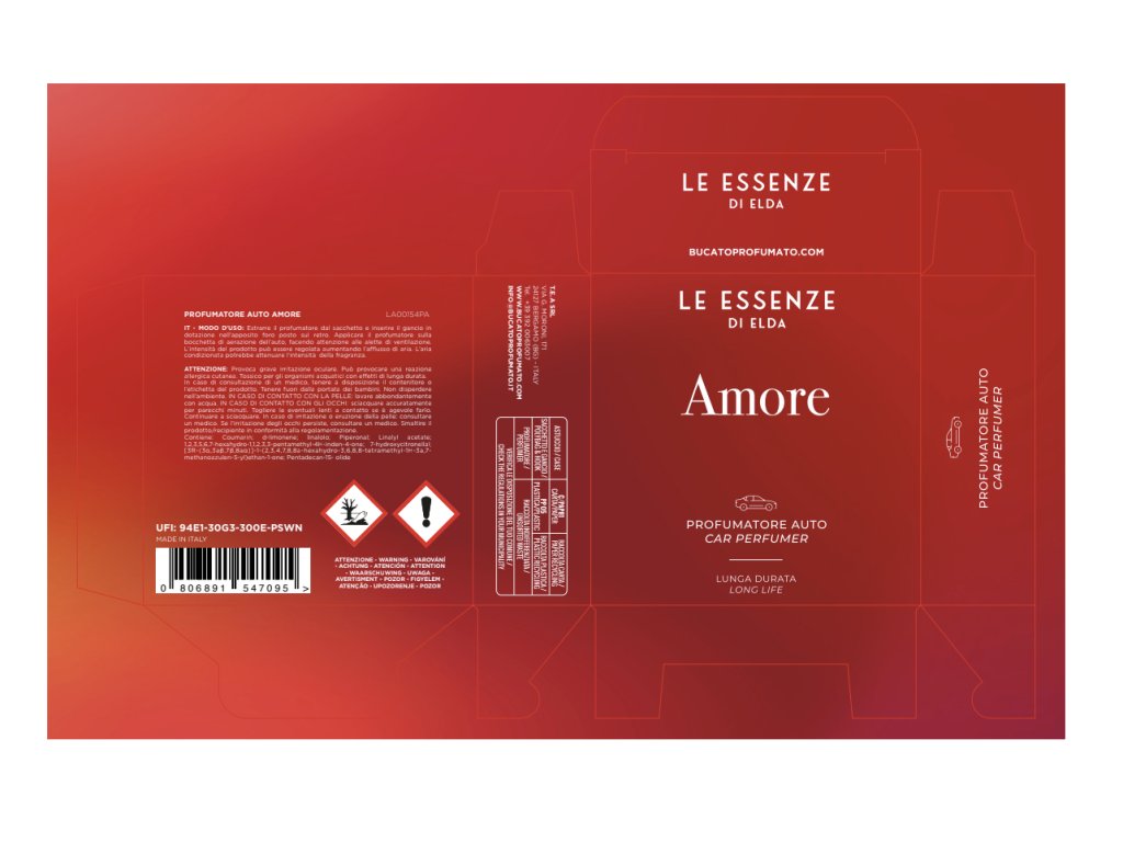 Odorizant auto AMORE - aromă dulce de vanilie, cu note picante.