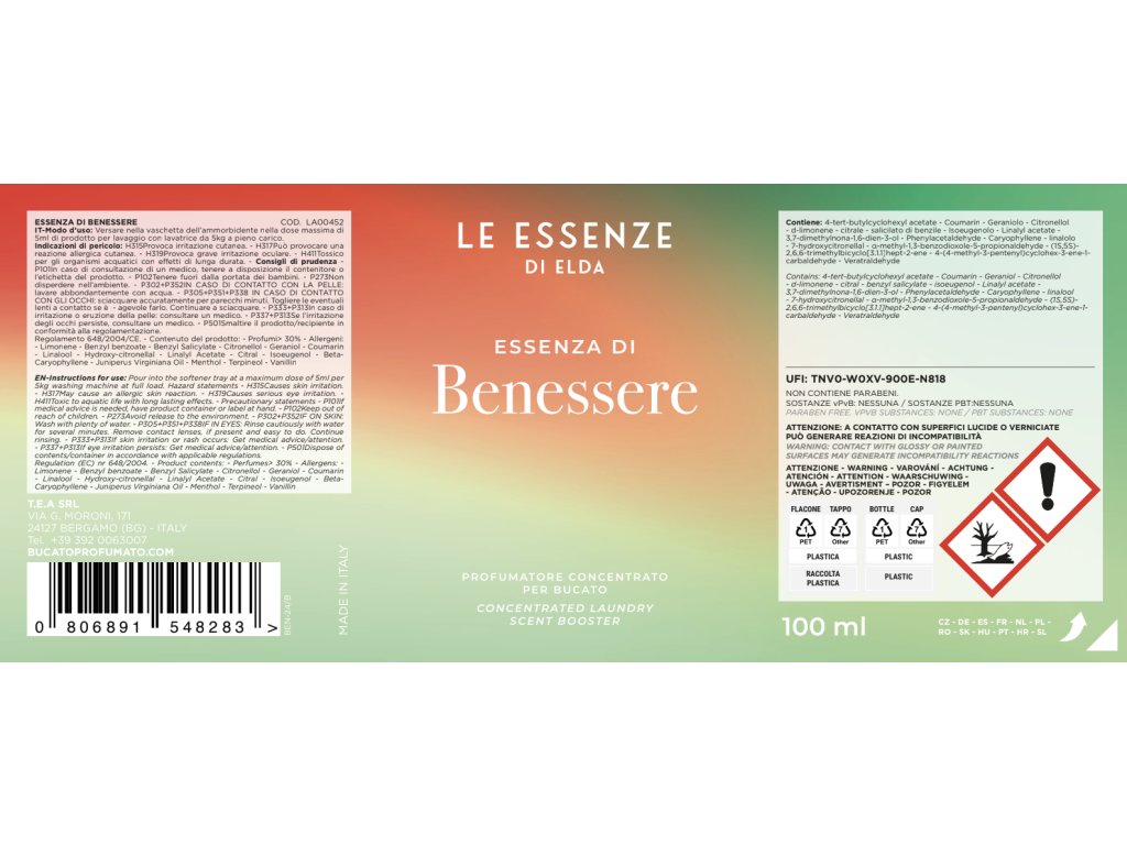 Acest parfum de rufe face parte din gama de produse Le Essenze di Elda, este un parfum creat special pentru haine, care captivează încă de la prima utilizare.