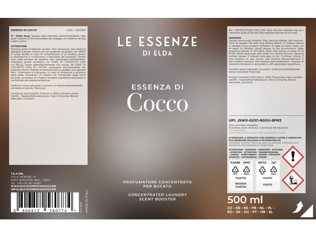 Parfum de rufe COCCO 500ml - Parfum dulce de lapte de nucă de cocos, vanilie și lemn de santal.