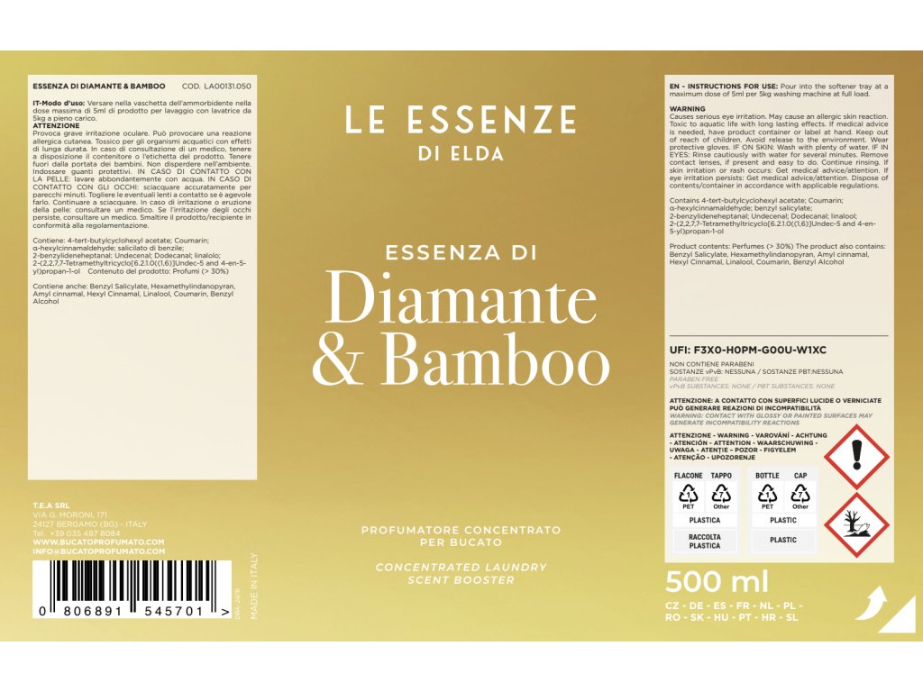 Parfum de rufe DIAMANTE & BAMBOO 500ml - Aromă pudrată cu notă de bambus.