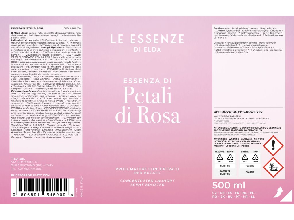 Parfum de rufe PETALI DI ROSA 500ml - Parfumul proaspăt al florilor de trandafir.