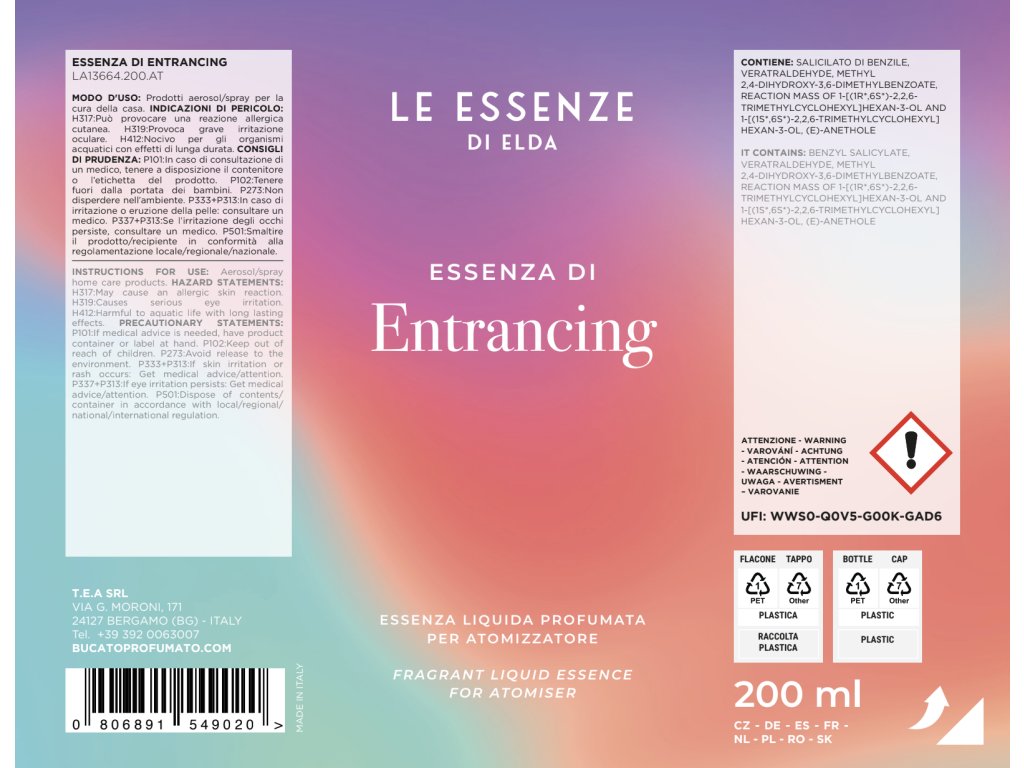 Esență parfumată lichidă ENTRANCHING 200 ml pentru difuzorul electric Elda, cu parfum proaspăt și picant.