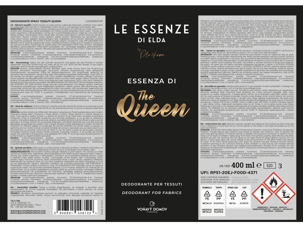 Spray pentru rufe și garderobă În ediție limitată cu Queen Plačková QUEEN 400ml - miros puternic de săpun și pudră.