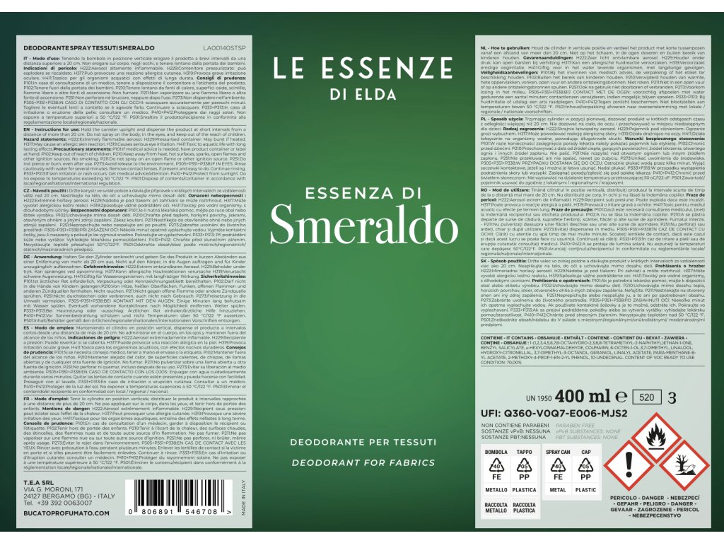 Spray pentru rufe și garderobă SMERALDO 400ml - Parfum proaspăt, cu senzația de curățenie.