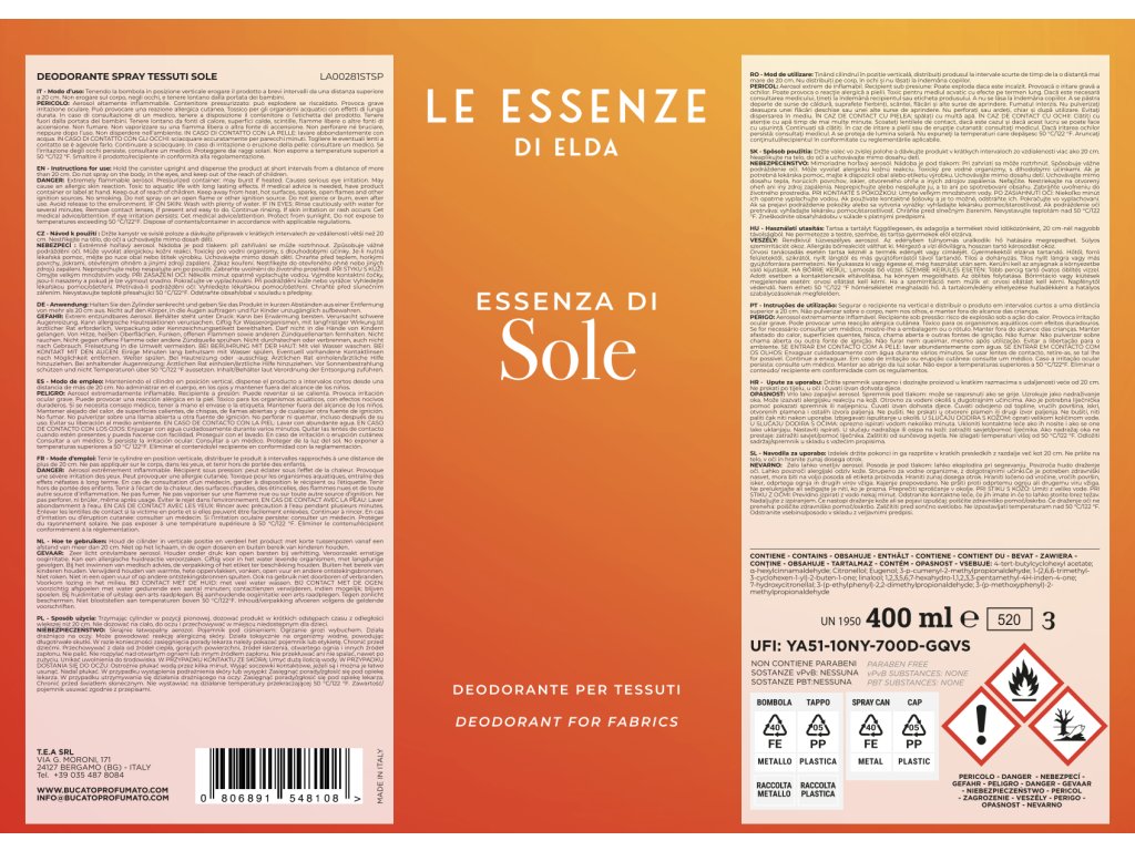 Spray pentru rufe și garderobă SOLE 400ml - Un parfum proaspăt de vară cu un subton dulce.
